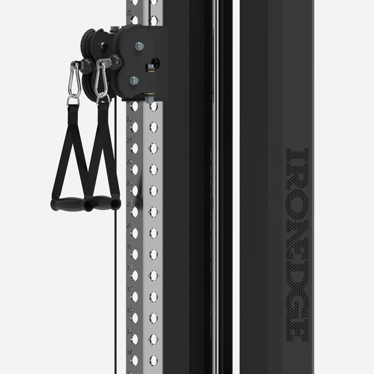 The stainless steel uprights feature the same hole spacing as our racks, meaning all of our rack attachments can be used with our Cable Station. Perfect for performing lat pulldowns and seated rows. You can even add your Dip Bar or Lynch Pad if you want!