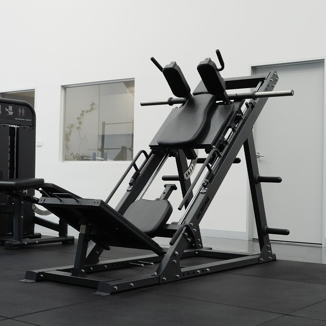 The top foot plate folds back and seat cover can be quickly removed to perform hack squats to isolate the quads from assisting muscles.Ā