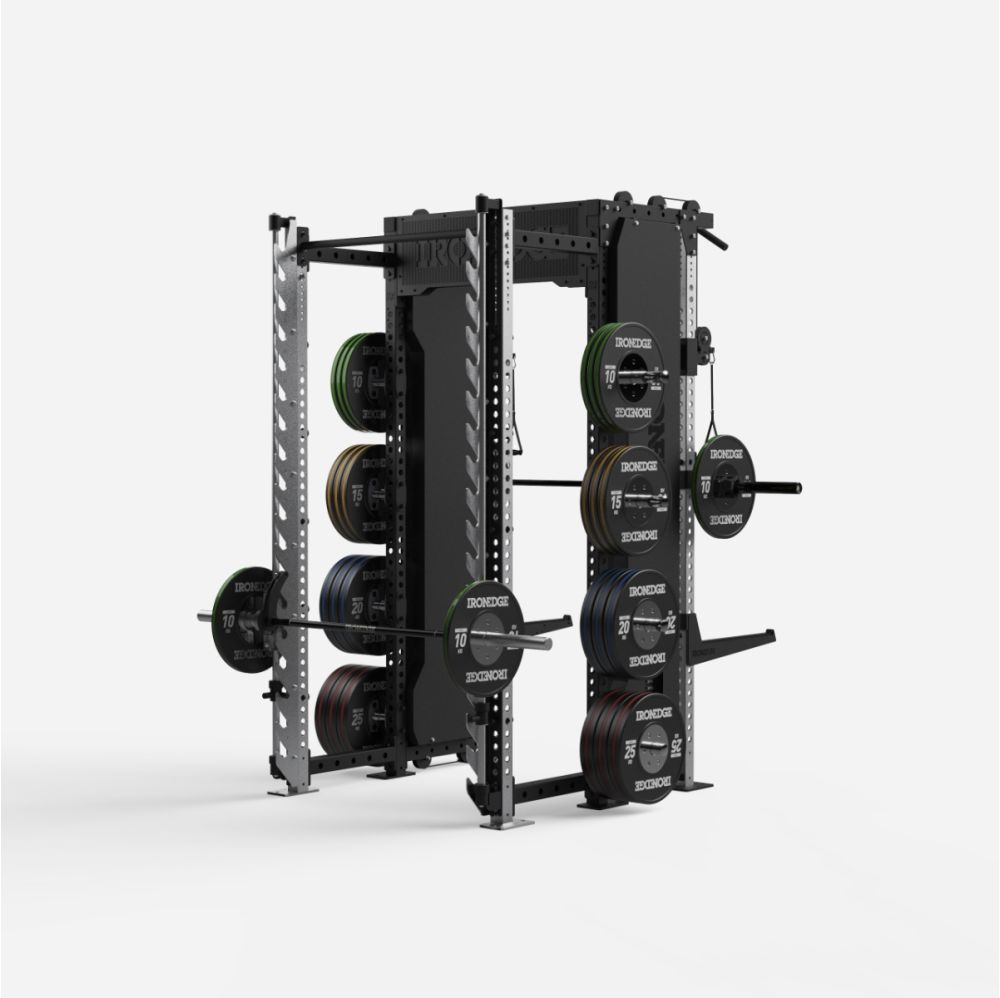 Our Nexa Rack™ - Smith model combines a traditional upright Smith Machine set up with a cable machine, that also doubles up for free weights. The Smith Machine attachment features ultra-smooth linear bearings which will have your bar gliding up the rails, just like a traditional Barbell. Staying consistent with our range of Olympic Bars, the Smith Machine Attachment bar is 20kg and is fitted with 35cm sleeves. Your exact weight capacity will depend on what plates you have, but using our Competition Bumpers for example you could fit 140kg of Bumpers per side, totalling 300kg including the bar.
