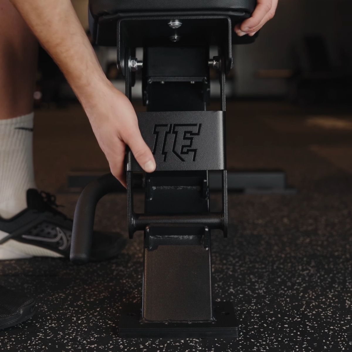 Regardless of whether you want a bench for commercial use or to serve in your home gym, the Iron Edge Flat / Incline Bench will deliver the goods. The bench height and pad width have been built to IPF specs ensuring a tried and tested design. The backrest is designed to lock at 7 different positions between 0-87 degrees while the seat locks at 3, which means the bench will hit every angle between military press and flat bench you could possibly desire. It will hold its angles courtesy of its ‘no fail’ locking system as reliably as Sydney Harbour Bridge. No locking pins required, simply lift the backrest or seat up/down to the desired angle, and it will lock in.Â