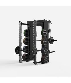 Tough enough to withstand an exploding bomb - or a dropped lift from an international level powerlifter. Storage Pins capable of holding all of the Bumper Plates you'd ever need, and then some. An SHS Crossbeam at the back to hold our various attachments, like Dip Bars and Lynch Pads. Options for band loading and de-loading at the top and bottom of each Cage. A branded Grille compatible with RGB lights.